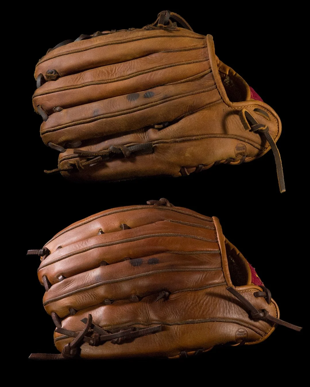All cleaned and conditioned with the glorious Ballplayer Balm products. Due to revisits, laces were a blend of Buy Fastpitch Gloves, Flatbill Baseball skived in appropriate sections. After conditioning deeply and realizing it still needed more protection, I treated the glove in Resolene by Fiebing Company to give it a proper seal and went back to buffing and conditioning until the sheen matched that of factory pieces. Pocket was also re-formed and suspended by GluvLuv oven-heated glove grease which -I can't say enough- is the only form of 'adhesive' one should ever put into a glove.